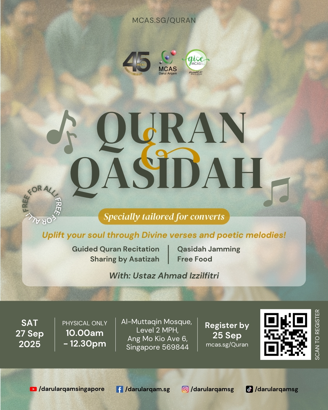Join us for a meaningful gathering of Quran, Qasidah, and spiritual sharing — where hearts are nourished through sacred words and soulful melodies.